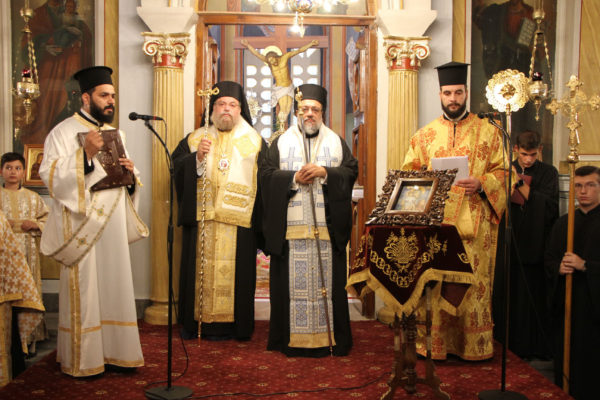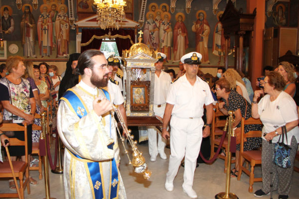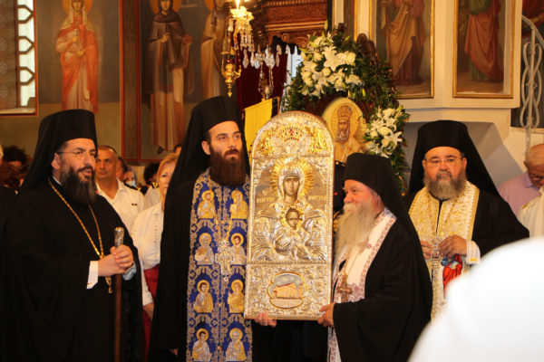 Στη συνέχεια με λιτανευτική πομπή η Ιερά Εικόνα έφτασε στο Ναό της Αναλήψεως του Χριστού, όπου και εναποτέθηκε. Ακολουθήσε η τέλεση πανηγυρικής Δοξολογίας, η χρίσις της Ιεράς Εικόνος με Άγιο Μύρο και η ενθρόνισή της.