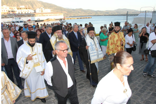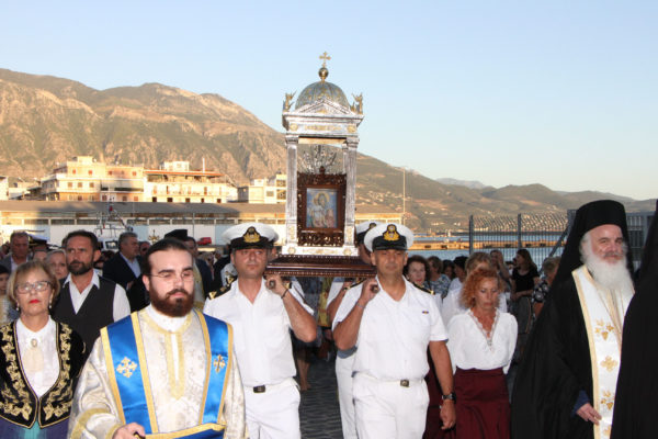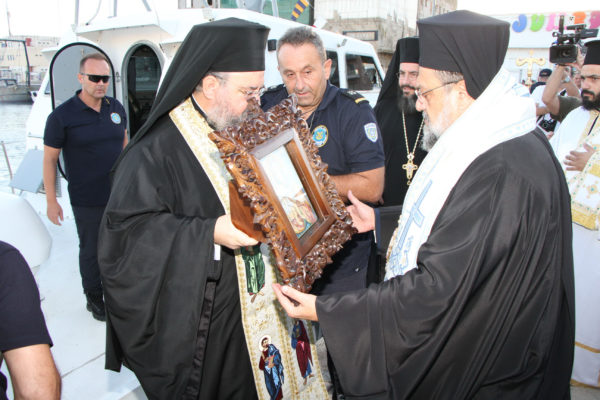 Της υποδοχής, η οποία πραγματοποιήθηκε δια θαλάσσης, προέστησαν οι Σεβασμιώτατοι Μητροπολίτες Καρθαγένης κ. Μελέτιος και Μεσσηνίας κ. Χρυσόστομος, με την συμμετοχή Ιερέων, εκπροσώπων τοπικών Αρχών και πλήθους πιστών.