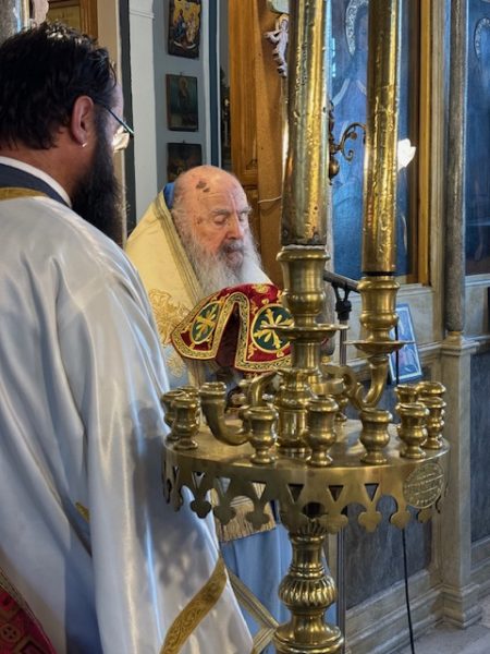 «Ζοῦμε σέ μιά ἐποχή πού λιγόστεψε ἡ πίστη, ἡ ἁγιοσύνη, ἡ ἀρετή, ἡ ἀνθρωπιά. Μᾶς λείπουν πολλά-πολλά συστατικά “πνευματικῆς ὑγείας”. Ἡ ἐποχή μας “ἐπιτηδεύεται” τήν διαχείριση τῶν εὐκαιριῶν καί μετεκπαιδεύει τούς ἀνθρώπους σέ “πιό ἐπιτυχημένες ἐπιτυχίες”». Είπε συγκεκριμένα ευχόμενος σ όλους από την ομορφιά της αυλής του Ναού.