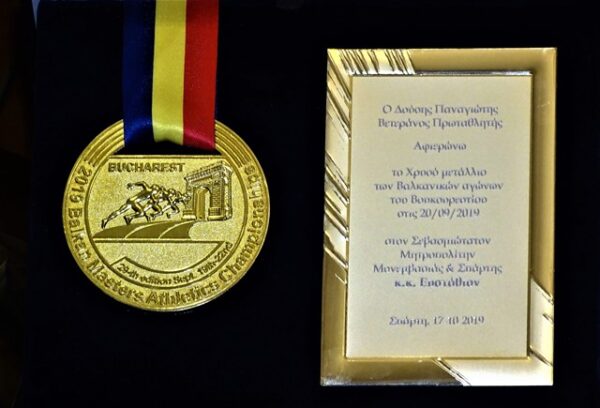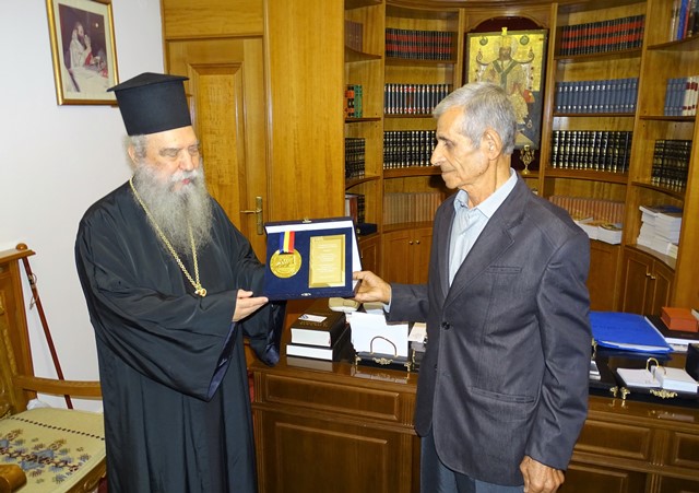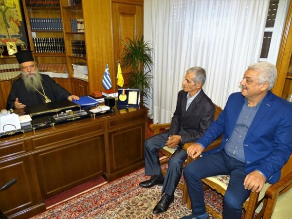 Από την πλευρά του ο 87χρονος δρομέας αναφέρθηκε στις δύσκολες στιγμές της ζωής του, που δεν τον αποθάρρυναν αλλά τον χαλύβδωσαν, ενώ ευχαρίστησε θερμά τον σεπτό Ποιμενάρχη μας για την πνευματική καθοδήγηση και την ψυχική στήριξη που του παρέχει απλόχερα. Ακολούθως ο κ. Δούσης πρόσφερε στον Σεβασμιώτατο ένα από τα χρυσά μετάλλια που κατέκτησε στους πρόσφατους Βαλκανικούς αγώνες του Βουκουρεστίου. Μάλιστα, επισήμανε ότι ο αγώνας διεξήχθη στις 20 Σεπτεμβρίου, ημέρα της ονομαστικής εορτής του Σεβ. Ποιμενάρχη μας, γεγονός που του έδωσε ακόμα μεγαλύτερη δύναμη για να επιτύχει τον στόχο του.
