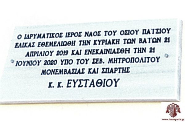 22/06/2020 22/06/2020 Το Σαββατοκύριακο 20 και 21 Ιουνίου 2020, οι κάτοικοι της Ελίκας και της ευρύτερης περιοχής Βοιών, περιοχών της Ιεράς Μητροπόλεως Μονεμβασίας και Σπάρτης, είχαν την πνευματική χαρά και την εξαιρετική τιμή να εγκαινιαστεί στον τόπο τους, και συγκεκριμένα στον περιβάλλοντα χώρο του ιδρύματος περιθάλψεως ηλικιωμένων και ατόμων με ειδικές ανάγκες «ο Άγιος Χαράλαμπος» της Ιεράς...