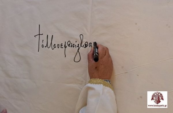 Πριν την ολοκλήρωση της ιερής ακολουθίας, τον λόγο πήρε και ο σεπτός Ποιμενάρχης, ο οποίος ευχαρίστησε αρχικά την σύζυγο του αειμνήστου Δημητρίου Στρατηγάκη, Γιαννούλα, για την αξιέπαινη πρωτοβουλία, ενώ συνεχάρη και την υπόλοιπη οικογένεια, που αν και ζει στο Εξωτερικό, έχει γαλουχηθεί με τα ελληνοχριστιανικά ιδεώδη. Στη συνέχεια αναφέρθηκε στην σπουδαιότητα της ανέγερσης και λειτουργίας ενός νέου Ιερού Ναού, ιδιαίτερα στις αποκαλυπτικές εποχές που βιώνουμε.
