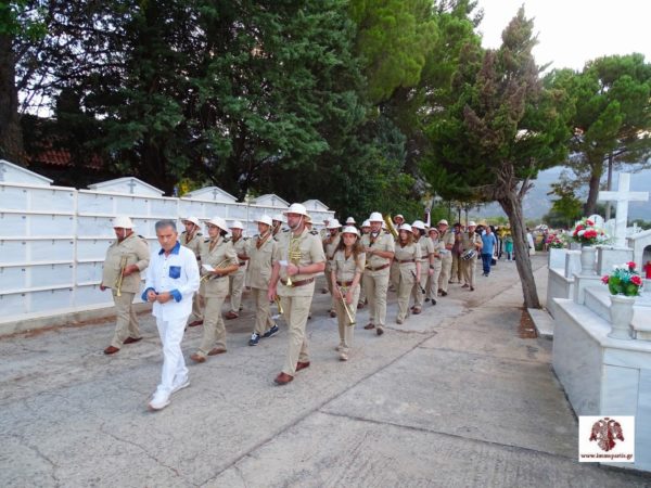 Κατακλείοντας την εσπερινή λατρευτική σύναξη, ο Σεβασμιώτατος συνεχάρη τον παρευρισκόμενο Δήμαρχο Σπάρτης κ. Μιχάλη Βακαλόπουλο και τους συνεργάτες του, για την καθαριότητα και την ευπρέπεια στους χώρους του Κοιμητηρίου, την Φιλαρμονική του Δήμου Σπάρτης και τον μαέστρο κ. Σαράντο Κανελλάκο, για την άψογη παρουσία που πάντα δίνει έναν ξεχωριστό τόνο στον εορτασμό, και τον κ. Νικολακάκη για το κήρυγμά του.