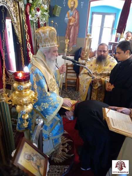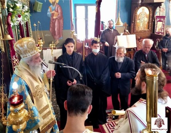 Αμέσως μετά, ο Σεβασμιώτατος σε μία συμβολική κίνηση για τη συνέχεια της Εκκλησίας και την ‘’παραλαβή της σκυτάλης’’ από τη νέα γενιά ευσεβών χριστιανών, χειροθέτησε Αναγνώστες τους δύο υιούς του εφημερίου του χωριού, πατρός Νεκταρίου Κουτσογιαννόπουλου, τον Παναγιώτη και τον Ανδρέα, που είναι μαθητές Λυκείου. Ο Ποιμενάρχης επαίνεσε την πολύτεκνη οικογένεια του πατρός Νεκταρίου, ενώ στους δύο νέους ευχήθηκε να καλλιεργήσουν την πίστη και την αγάπη τους στον Θεό παράλληλα με την εκπαιδευτική μόρφωσή τους.