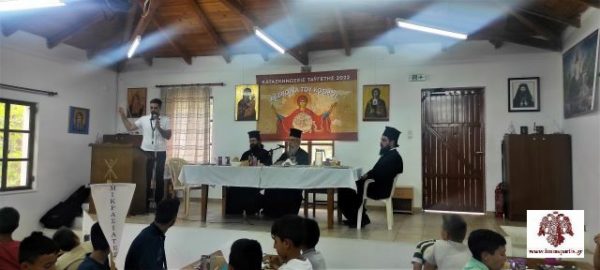 Παίρνοντας τον λόγο ο Σεβασμιώτατος απηύθυνε προς όλους πατρικά λόγια αγάπης. Ιδιαίτερα προέτρεψε τους μικρούς κατασκηνωτές, οι περισσότεροι από τους οποίους για πρώτη φορά στη ζωή τους γνωρίζουν την μοναδική αυτή εμπειρία, να κρατήσουν σαν φυλακτό στις καρδιές τους όσα ωφέλιμα ζήσουν και ακούσουν τις ημέρες αυτές και να προσπαθήσουν να τα εφαρμόσουν στην υπόλοιπη ζωή τους.