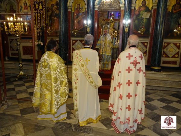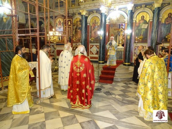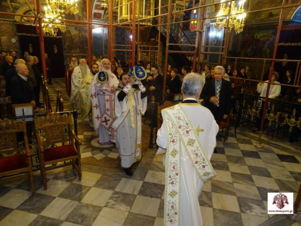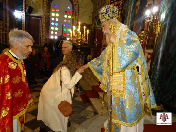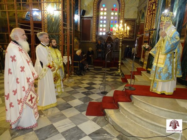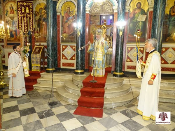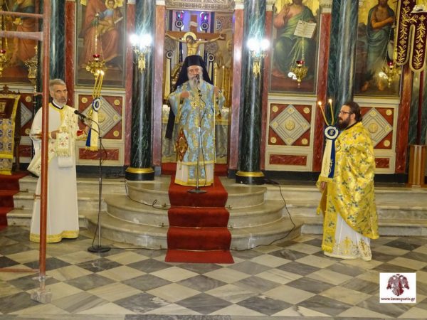 Πριν την Απόλυση και την τέλεση της Δοξολογίας, ο Σεβασμιώτατος Μητροπολίτης αναφέρθηκε στη μεγάλη θεομητορική εορτή ευχόμενος η Υπεραγία Θεοτόκος να έχει πάντα υπό την Σκέπη Της τις Ελληνικές Ένοπλες Δυνάμεις και τους ευλαβείς χριστιανούς της Πατρίδας μας.