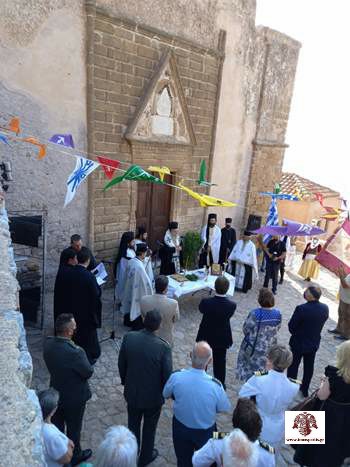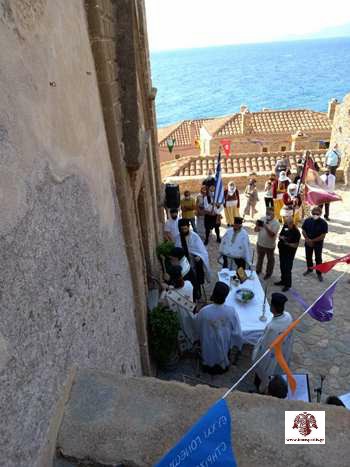 Αμέσως μετά, εντός του Ναού, τελέσθηκε η Δοξολογία για τον εορτασμό των 200 ετών από την απελευθέρωση της ιστορικής πόλης της Μονεμβασίας. Τον πανηγυρικό της ημέρας εξεφώνησε, με γλαφυρό τρόπο, ο κ. Δημήτριος Ανδριτσάκης, ομότιμος καθηγητής της Οδοντιατρικής Σχολής του Πανεπιστημίου Αθηνών. Ακολούθως μίλησε εκ μέρους της Ιεράς Μητροπόλεώς ο εφημέριος Μονεμβασίας, Πρωτ. Κωνσταντίνος Κρυπωτός, ο οποίος αναφέρθηκε στην ιστορία του Ναού και στις προσπάθειες δεκαετιών για την επαναλειτουργία του. Παράλληλα ευχαρίστησε την Υπουργό Πολιτισμού για την πολύτιμη βοήθεια και το αμέριστο ενδιαφέρον της για πολλά έργα εντός της καστροπολιτείας.