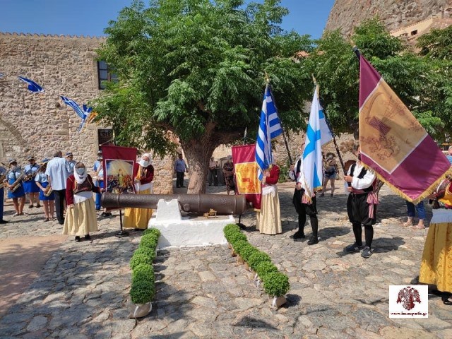 Αμέσως μετά έγινε μετάβαση στο χώρο της πλατείας του Ελκομένου Χριστού, όπου τελέσθηκε επιμνημόσυνη δέηση και αποδόθηκαν τιμές στους ένδοξους προγόνους μας. Σημειώνεται ότι οι λαμπρές εκδηλώσεις, που κάθε χρόνο διοργανώνει ο Δήμος Μονεμβασίας, με κορύφωση την αναπαράσταση της πυρπόλησης της τουρκικής γαλέρας στο λιμάνι, φέτος δεν πραγματοποιήθηκαν, λόγω των μέτρων για τον περιορισμό διασποράς του κορωνοϊού.