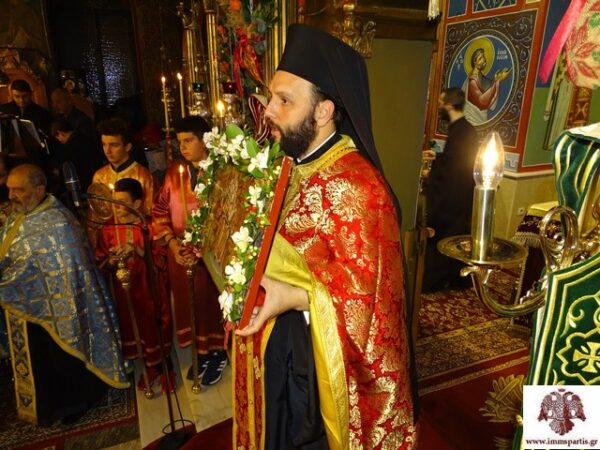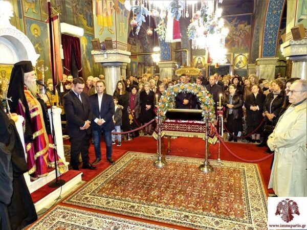 Με την ολοκλήρωση της εσπερινής λατρευτικής σύναξης, ο σεπτός Ποιμενάρχης ευχήθηκε στο πυκνό εκκλησίασμα να έχει τη χάρη και την ευλογία του τιμώμενου Αγίου, ο οποίος υπήρξε μία σημαντική μορφή του Χριστιανισμού.