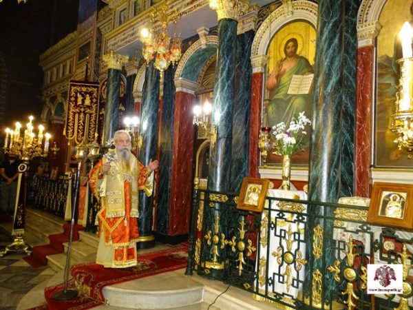 Κατακλείοντας την λατρευτική σύναξη, ο σεπτός Ποιμενάρχης μίλησε για τον τιμώμενο Άγιο επισημαίνοντας ότι κάθε πτυχή της ζωής του, όπως οι ασθένειες, ο έγγαμος βίος, η πολυτεκνία, η χηρεία, η ιερωσύνη, το υψηλό μορφωτικό του επίπεδο και οι ανελέητοι διωγμοί που υπέστη, αποτελούν απτές αποδείξεις ότι η αγιότητα μπορεί να κατακτηθεί και στις ημέρες μας, όποιες κι αν είναι οι συνθήκες και τα εμπόδια στη ζωή μας.