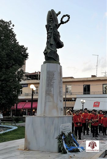 Αμέσως μετά έγινε μετάβαση των επισήμων στο Ηρώο των εκτελεσθέντων στο Μονοδένδρι, όπου ο σεπτός Ποιμενάρχης τέλεσε επιμνημόσυνη δέηση και αποδόθηκαν τιμές. Την Κυβέρνηση εκπροσώπησε ο καθηγητής κ. Κωνσταντίνος Αραβώσης, Γενικός Γραμματέας Φυσικού Περιβάλλοντος και Υδάτων στο Υπουργείο Περιβάλλοντας και Ενέργειας.