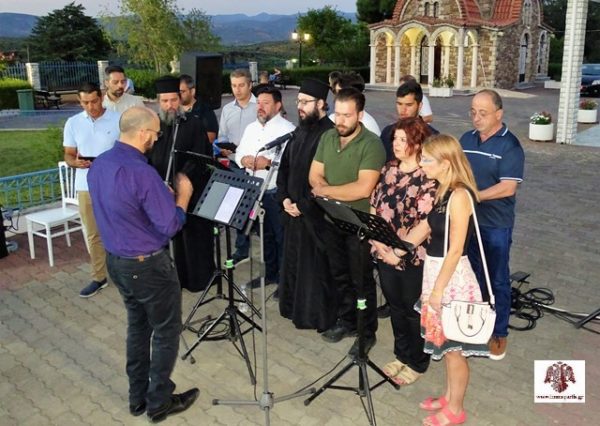 Ακολούθησε απόδοση ύμνων αφιερωμένων στην Υπεραγία Θεοτόκο από την χορωδία της Σχολής Βυζαντινής Μουσικής της Ιεράς Μητροπόλεώς , υπό την διεύθυνση του Διευθυντής της Σχολής κ. Παναγιώτη Χρόνη.