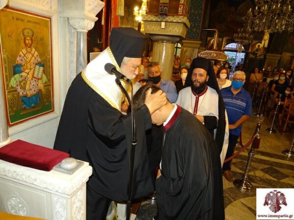 Πριν την ολοκλήρωση της εσπερινής λατρευτικής σύναξης, ο σεπτός Ποιμενάρχης χειροθέτησε Αναγνώστες τον Πρωτοψάλτη του Ιερού Ναού Αγίου Σπυρίδωνος κ. Νικόλαο Ταπραντζή και τον Λαμπαδάριο του Ναού κ. Μιχάλη Σωτηρίου. Επίσης χειροθέτησε Εκκλησιαστικούς τους ευσεβείς νέους Κωνσταντίνο Πετρούλια και Μιχάλη Παπαλυμπέρη.