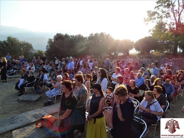 Η υπαίθρια λατρευτική σύναξη ολοκληρώθηκε με τον λόγο του Ποιμενάρχη, ο οποίος ευχαρίστησε όλους όσοι συνέβαλαν στην επιτυχία του Εσπερινού, τους κληρικούς, τους ιεροψάλτες, τους τοπικούς άρχοντες, αλλά και τους ευλαβείς χριστιανούς που ανταποκρίθηκαν στο κάλεσμα και κατέκλυσαν τον αρχαιολογικό χώρο. Ιδιαίτερες ευχαριστίες απηύθυνε στην προϊστάμενη της Εφορείας Αρχαιοτήτων Λακωνίας κα Πάντου και τους συνεργάτες της για την ολοπρόθυμη συνεργασία τους.