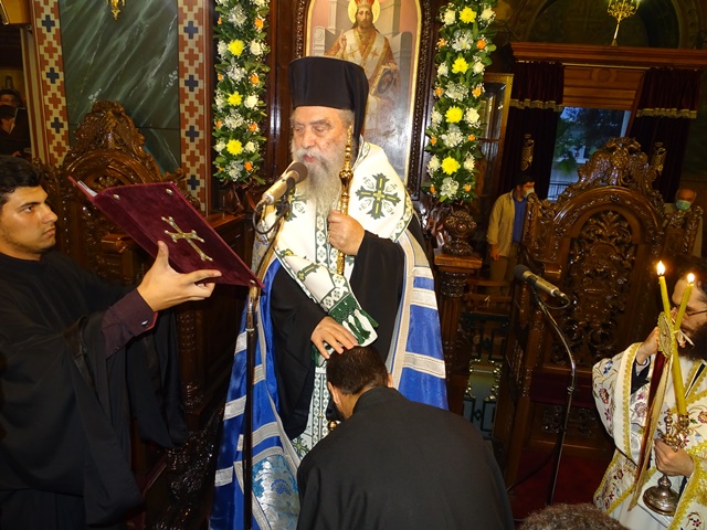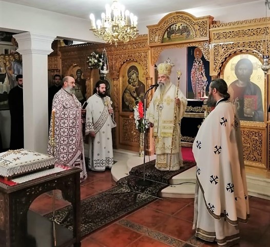 Την κυριώνυμη ημέρα της εορτής ο Σεβασμιώτατος Μητροπολίτης ιερούργησε στον Ιερό Ναό του Αγίου Ευσταθίου στο Ίδρυμα περιθάλψεως ηλικιωμένων και ΑΜΕΑ στους Μολάους παρουσία ισχνού εκκλησιάσματος, λόγω των μέτρων προστασίας για την μετάδοση του κορωνοϊού.
