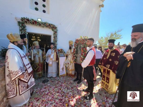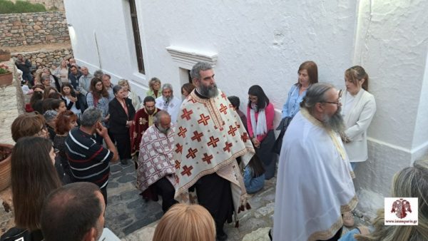 Ακολούθησε, σε κατανυκτικό κλίμα, η λιτάνευση της Ιερής εικόνας κατά τη διάρκεια της οποίας τελέσθηκε δέηση για την προστασία των χριστιανών του ευλογημένου αυτού τόπου.