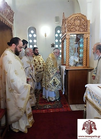 Ακολούθησε λιτάνευση της Ιερής Εικόνας πέριξ του Ναού. Ύστερα από την ολοκλήρωση της θρησκευτικής τελετής μοιράστηκαν γλυκίσματα σε όλους τους παρευρισκόμενους. Στον εορτασμό συμμετείχαν, μεταξύ άλλων, ο Δήμαρχος Δ. Ευρώτα κ. Δήμος Βέρδος και ο επικεφαλής της μείζονος μειοψηφίας του Δημοτικού Συμβουλίου κ. Γεώργιος Μαρουδάς.