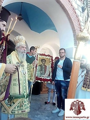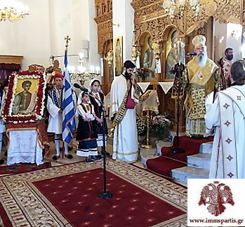 Ο σεπτός Ποιμενάρχης στον εμπνευσμένο λόγο του αναφέρθηκε στη βιοτή του Αγίου και έκανε λόγο για το θάρρος και την ανδρεία του νεαρού μάρτυρος. Εμφανώς συγκινημένος επαίνεσε την μαθητιώσα νεολαία του χωριού, η οποία έδωσε δυναμικό παρόν στον εορτασμό με αντιπροσωπείες των σχολείων όλων των βαθμίδων. Ιδιαίτερα εκθείασε τα παιδιά, που πλαισίωσαν την ιερή εικόνα του Αγίου ενδεδυμένα με παραδοσιακές στολές. Ολοκληρώνοντας την ψυχωφέλιμη ομιλία του, ο Σεβασμιώτατος έκανε έκκληση στον Άγιο νεομάρτυρα Ιωάννη να προστατεύει την περιοχή και ιδιαίτερα τους νέους, για τους οποίους αποτελεί τρανό παράδειγμα πίστης και θυσίας.
