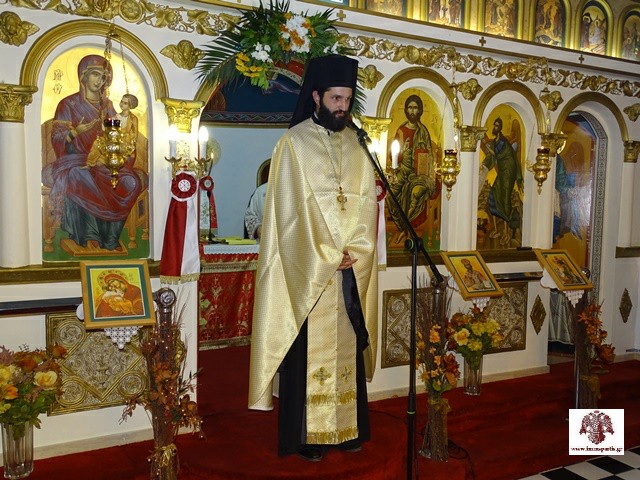 Κατακλείοντας την θρησκευτική τελετή, ο Σεβασμιώτατος μίλησε για το εφήμερο της επίγειας ζωής και την ανάγκη να είμαστε έτοιμοι ανά πάσα στιγμή για την επουράνια απολογία μας. Στη συνέχεια αναφέρθηκε στις πυρκαγιές, που πληγώνουν την Πατρίδα μας, ευχόμενος την ενδυνάμωση όλων όσοι με αυταπάρνηση δίνουν τον άνισο αγώνα της κατάσβεσης. Παράλληλα μίλησε για την ανάγκη προστασίας της φύσης, η οποία είναι δημιούργημα του Θεού και έχει πρωτεύοντα ρόλο στη χριστιανική διδασκαλία.