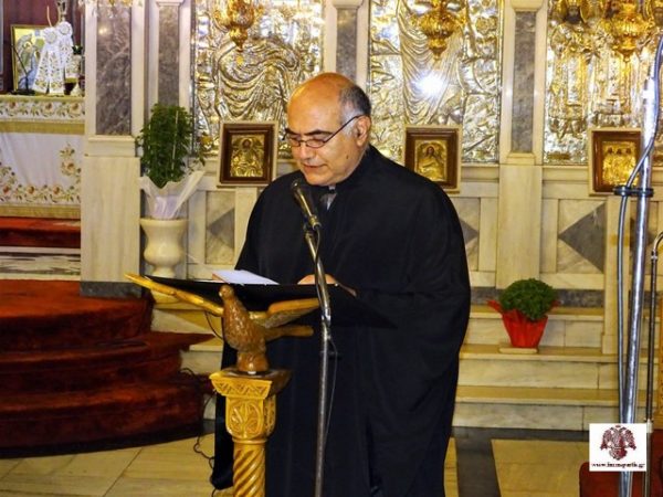 Ολοκληρώνοντας παρουσίασε στο εκκλησίασμα τον καθηγητή – φιλόλογο και θεολόγο κ. Ανδρέα Μοράτο, ο οποίος με γλαφυρό τρόπο αναφέρθηκε στον βίο, την ισχυρή προσωπικότητα, τον πατριωτισμό και το μαρτυρικό τέλος του Αγίου Χρυσοστόμου Σμύρνης.