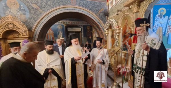 Πριν το πέρας του Εσπερινού, ο Σεβασμιώτατος απένειμε το χειροθετήριο έγγραφο του Αναγνώστη στον Λαμπαδάριο του Μητροπολιτικού Ναού Κοιμήσεως της Θεοτόκου Ύδρας, κ. Γεώργιο Σκάγκο, τον οποίο πέρυσι στον πανηγυρικό Εσπερινό είχε χειροθετήσει ο Θεοφιλέστατος Επίσκοπος Λακεδαιμονίας κ. Θεόφιλος, με την ευλογία του Σεβ. Ποιμενάρχη. Ο Σεβασμιώτατος ευχήθηκε στον κ. Σκάγκο προσωπική και οικογενειακή υγεία, χαρά και κατά Θεόν προκοπή.