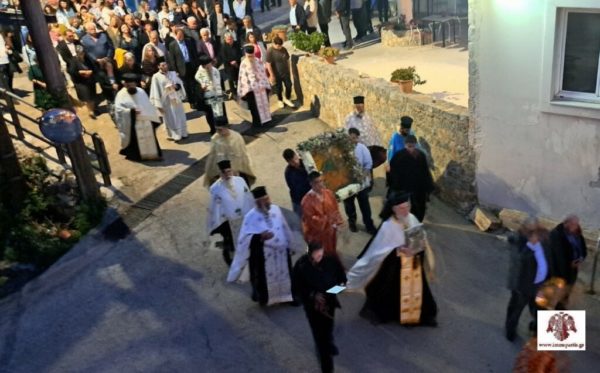 Ακολούθησαν, σε κατανυκτικό κλίμα, η λιτάνευση της ιερής εικόνας και η τέλεση δέησης στην πλατεία του χωριού.