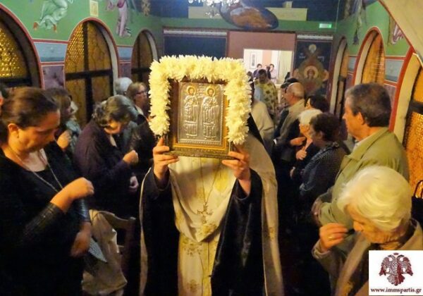 Επίκαιρα μίλησε ο Γενικός Αρχιερατικός Επίτροπος της Ιεράς Μητροπόλεώς μας και εφημέριος Κοκκινόραχης Πρωτ. Συμεών Παπαγεωργίου. Με την ολοκλήρωση της εσπερινής λατρευτικής σύναξης, ο σεπτός Ποιμενάρχης μας απευθυνόμενος στο πολυπληθές εκκλησίασμα επισήμανε ότι η απόλυτη προτεραιότητά μας θα πρέπει να είναι η – χωρίς όρους και όρια – αγάπη στον Πανάγαθο Θεό, η οποία στη συνέχεια εξακτινώνεται σε κάθε πτυχή της ζωής μας, δίνοντάς της νόημα. Παράλληλα ευχήθηκε οι Άγιοι Ανάργυροι να αποτελούν στήριγμα της Προέδρου και των μελών του Διοικητικού Συμβουλίου, του Διευθυντή, των εργαζομένων και των τροφίμων του Ιδρύματος.