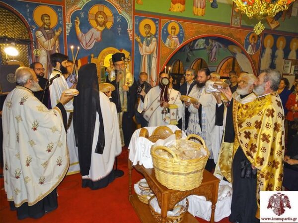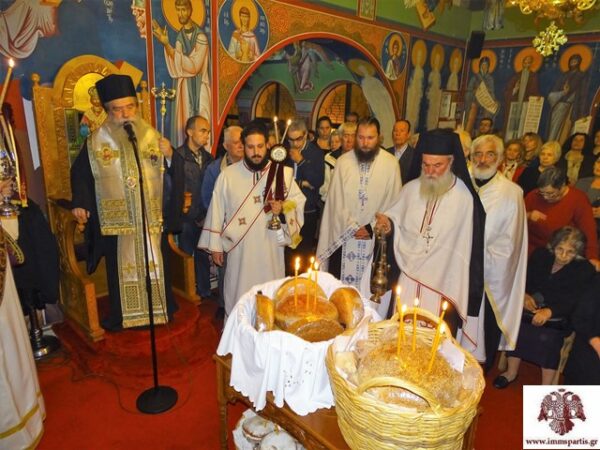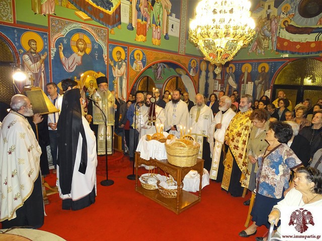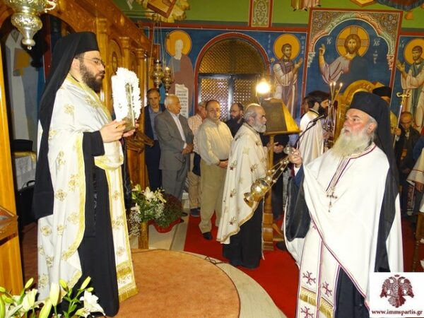 Το απόγευμα της παραμονής τελέσθηκε ο Μέγας Πανηγυρικός Αρχιερατικός Εσπερινός μετ’ αρτοκλασίας χοροστατούντος του Σεβασμιωτάτου Μητροπολίτη κ. Ευσταθίου και με τη συμμετοχή ιερέων από την ευρύτερη περιοχή.