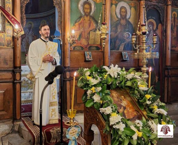 Για το πρόσωπο της Μεγαλόχαρης μίλησε στο πυκνό εκκλησίασμα, με γλαφυρότητα, ο διάκονος και ιεροκήρυκας της Μητροπόλεως, π. Αρσένιος Μπουρουιάνα.