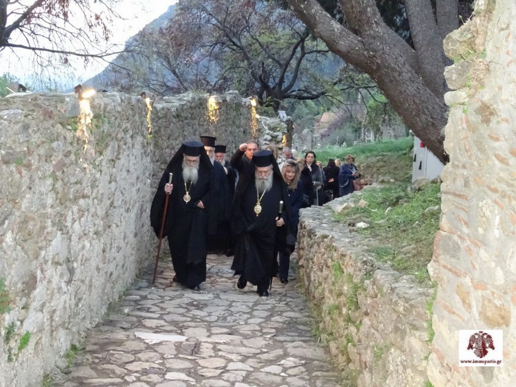 Στην ακολουθία χοροστάτησε, ως προσκεκλημένος του Μητροπολίτη Μονεμβασίας και Σπάρτης κ. Ευσταθίου, ο Σεβασμιώτατος Μητροπολίτης Προικοννήσου κ. Ιωσήφ. Νωρίτερα, κατά την είσοδο των δύο Μητροπολιτών στην καστροπολιτεία του Μυστρά, τελέσθηκε δέηση στο σημείο, όπου το 1764 μ.Χ. μαρτύρησε από τους Τούρκους ο νέος Άγιος της Εκκλησίας μας, εθνοϊερομάρτυρας Ανανίας Λαμπάρδης, Μητροπολίτης Λακεδαιμονίας.