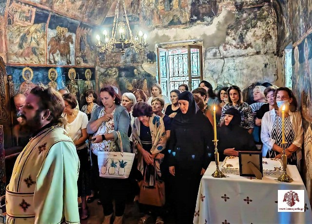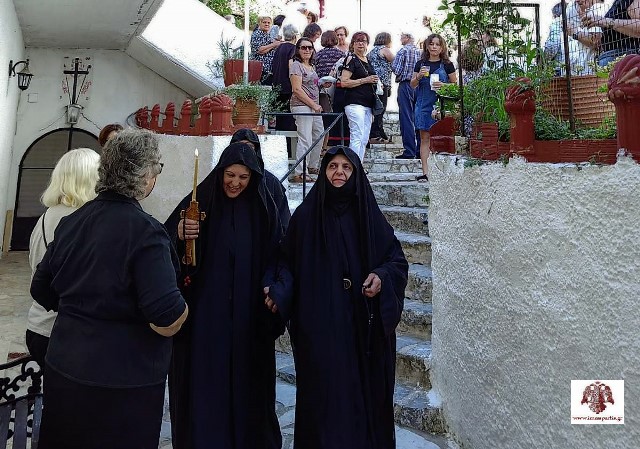 Ακολούθως, ο Σεβασμιώτατος παρουσίασε στο εκκλησίασμα τη νέα μοναχή, η οποία ασκήτευσε για τρία χρόνια στο ακρωτήριο Μαλέα, που έχει και την ονομασία ‘’Μικρό Άγιο Όρος’’, και πλέον θα συνεχίσει την αφιέρωσή της στον Πανάγαθο Θεό και την Υπεραγία Θεοτόκο στην ιστορική αυτή Ιερά Μονή προσφέροντας παράλληλα τις πολύτιμες υπηρεσίες της και συντελώντας στην συνέχεια της μοναστικής ζωής.