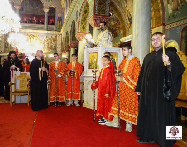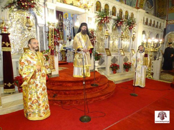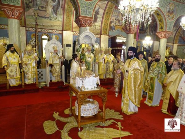 Την κυριώνυμη ημέρα της εορτής, Τετάρτη 26 Νοεμβρίου, στον πανηγυρίσαντα περικαλλή Ιερό Ναό, τελέσθηκε αρχικά ο Όρθρος χοροστατούντος του Σεβασμιωτάτου Αρχιεπισκόπου Κρήτης κ. Ευγενίου Β΄, ενώ ακολούθησε η αμφιοφορία του σύμφωνα με το βυζαντινό τυπικό. Τους άρτους ευλόγησε ο Σεβασμιώτατος Μητροπολίτης Φωκίδος κ. Θεόκτιστος. Στην Πολυαρχιερατική Θεία Λειτουργία που ακολούθησε συμμετείχαν επίσης οι Σεβασμιώτατοι Μητροπολίτες Μάνης κ. Χρυσόστομος και Γόρτυνος και Μεγαλοπόλεως κ. Νικηφόρος, ο Μητροπολίτης Μονεμβασίας και Σπάρτης κ. Ευστάθιος, ο οποίος και προέστη, και ο Θεοφιλέστατος Επίσκοπος Λακεδαιμονίας κ. Θεόφιλος, Βοηθός Επίσκοπος της Ιεράς Μητρόπολης.