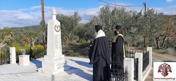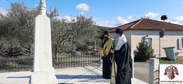 Ακολούθως, ο σεπτός Ποιμενάρχης μετέβη στον Καραβά, όπου τέλεσε επιμνημόσυνη δέηση στο μνημείο των 12 αδικοχαμένων στρατιωτών, οι οποίοι πριν 48 χρόνια σκοτώθηκαν σε τραγικό δυστύχημα στην παλαιά Ε.Ο. Σπάρτης-Μεγαλόπολης, όταν στρατιωτικό όχημα του ΚΕΕΜ εξετράπη της πορείας του. Οι οπλίτες ήταν μέλη της στρατιωτικής μπάντας και του αγήματος που θα απέδιδε τιμές, ανήμερα της εορτής του Αγίου Θεοκλήτου, στο Καστόρι.