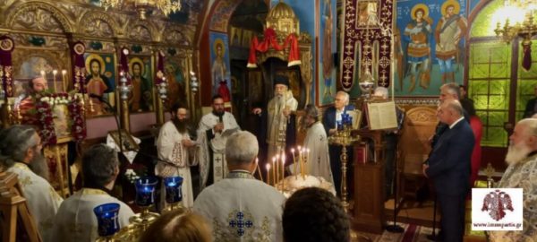 Στην Μυρτέα, στον Ενοριακό Ιερό Ναό Αγίου Γεωργίου, τελέσθηκε το απόγευμα της παραμονής ο πανηγυρικός Αρχιερατικός Εσπερινός μετ’ αρτοκλασίας χοροστατούντος του Σεβασμιωτάτου Μητροπολίτη Μονεμβασίας και Σπάρτης κ. Ευσταθίου και με τη συμμετοχή αρκετών κληρικών της τοπικής Εκκλησίας. Συμπροσευχούμενος παρέστη και ο Θεοφιλέστατος Επίσκοπος Λακεδαιμονίας κ. Θεόφιλος.