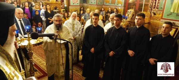 Κατά τη διάρκεια της εσπερινής λατρευτικής σύναξης, ο σεπτός Ποιμενάρχης χειροθέτησε Αναγνώστες τέσσερις υιούς του εφημερίου του χωριού, Αιδεσιμολογιώτατου Πρωτοπρεσβύτερου πατρός Αθανασίου Τσολάκου. Συγκεκριμένα, χειροθετήθηκαν ο Γιώργος, ιδιωτικός υπάλληλος, ο Χρήστος και ο Θεόδωρος, που είναι αξιωματικοί του Ελληνικού Στρατού και ο Παύλος που είναι δευτεροετής φοιτητής του πανεπιστημιακού τμήματος Μηχανολόγων Μηχανικών.