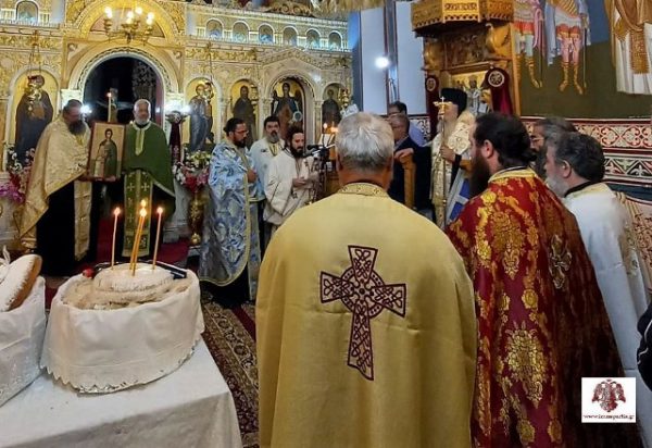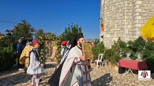 Από την πλευρά του, ο Σεβασμιώτατος στον εμπνευσμένο λόγο του αναφέρθηκε στη βιοτή του Αγίου υπογραμμίζοντας το θάρρος και την ανδρεία του νεαρού μάρτυρος. Εμφανώς συγκινημένος, επαίνεσε την μαθητιώσα νεολαία του χωριού, η οποία έδωσε δυναμικό παρόν στον εορτασμό με αντιπροσωπείες των σχολείων όλων των βαθμίδων, ενώ εκθείασε ιδιαίτερα τα παιδιά, που πλαισίωσαν την ιερή εικόνα του Αγίου ενδεδυμένα με παραδοσιακές στολές.