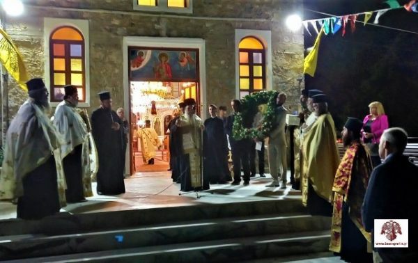 Από την πλευρά του, ο Σεβασμιώτατος στον εμπνευσμένο λόγο του αναφέρθηκε στη βιοτή του Αγίου υπογραμμίζοντας το θάρρος και την ανδρεία του νεαρού μάρτυρος. Εμφανώς συγκινημένος, επαίνεσε την μαθητιώσα νεολαία του χωριού, η οποία έδωσε δυναμικό παρόν στον εορτασμό με αντιπροσωπείες των σχολείων όλων των βαθμίδων, ενώ εκθείασε ιδιαίτερα τα παιδιά, που πλαισίωσαν την ιερή εικόνα του Αγίου ενδεδυμένα με παραδοσιακές στολές.