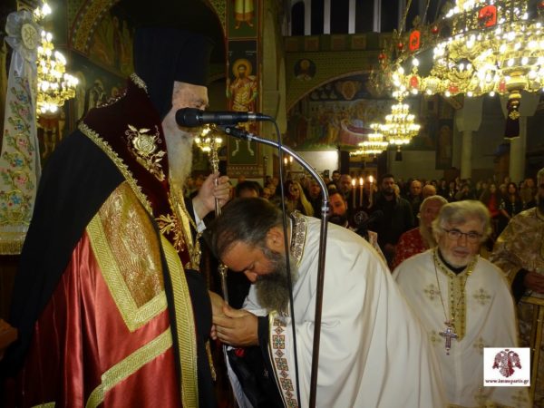 Χειροθεσία Πρωτοπρεσβύτερου κατά τον πανηγυρικό Αρχιερατικό Εσπερινό στον Ι.Ν. Αγ. Νικολάου Σπάρτης