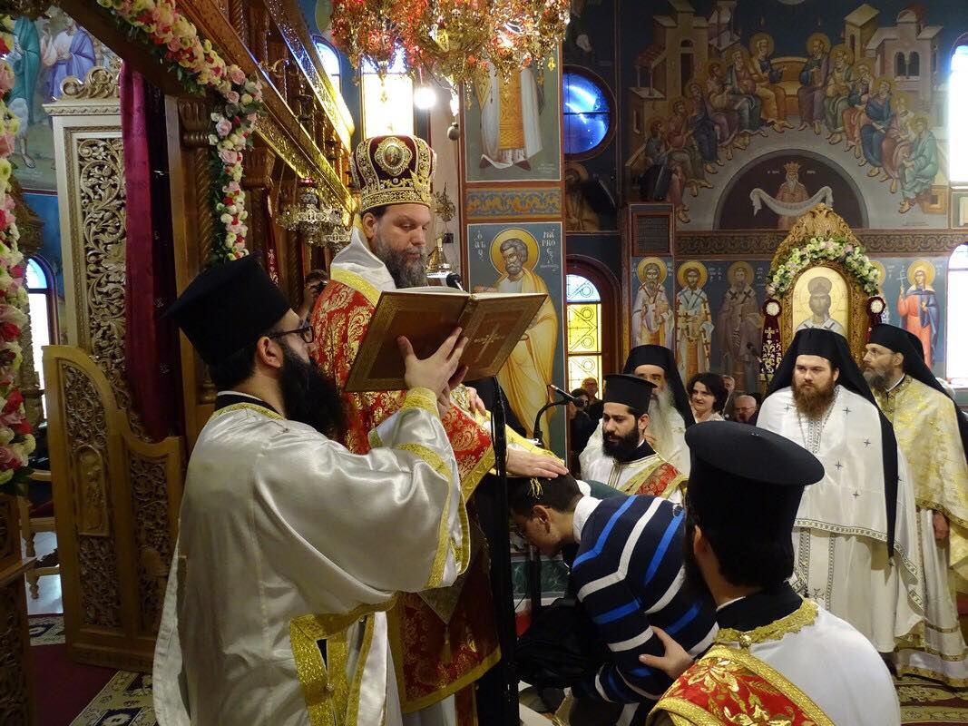 Μετά το πέρας της Θείας Λειτουργίας ο Σεβασμιώτατος προέβη στη χειροθεσία δύο νέων Αναγνωστών που διακονούν στο Ιερό Αναλόγιο του Ναού.