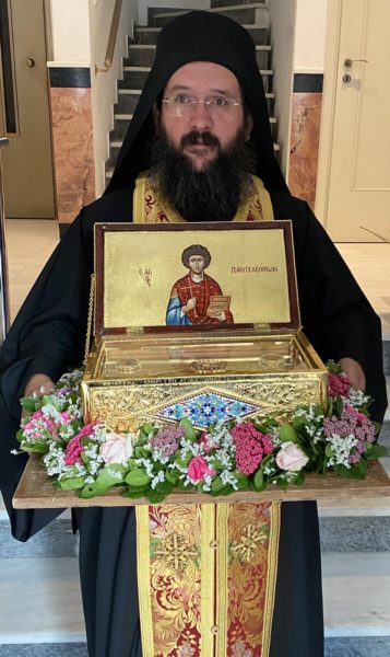 Νωρίτερα, στο πλαίσιο του εορτασμού του Ιερού Παρεκκλησίου ο Σεβασμιώτατος υποδέχθηκε τεμάχιο Ιερού Λειψάνου του Αγίου ΜεγαλομάρτυροςΠαντελεήμονος του Ιαματικού, το οποίο τέθηκε σε προσκύνηση προς ευλογία και αγιασμό των πιστών.