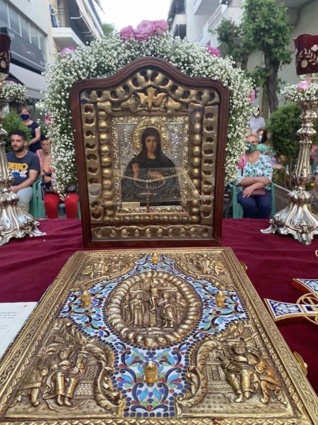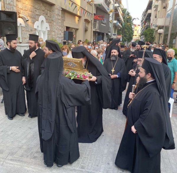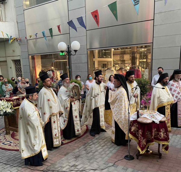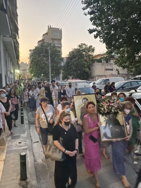 Ακολούθως πραγματοποιήθηκε λιτάνευση της Ιεράς Εικόνας και του Ιερού Λειψάνου της Αγίας Παρασκευής και του Αγίου Παντελεήμονος.