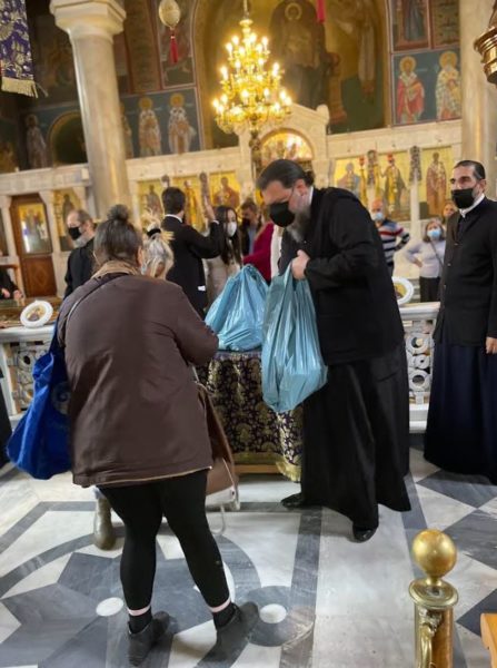 Την παράδοση των δεμάτων πραγματοποίησε ο ίδιος o Σεβασμιώτατος, συνοδευόμενος από κληρικούς και εθελοντές των κοινωνικών δομών της Ιεράς Μητροπόλεως.