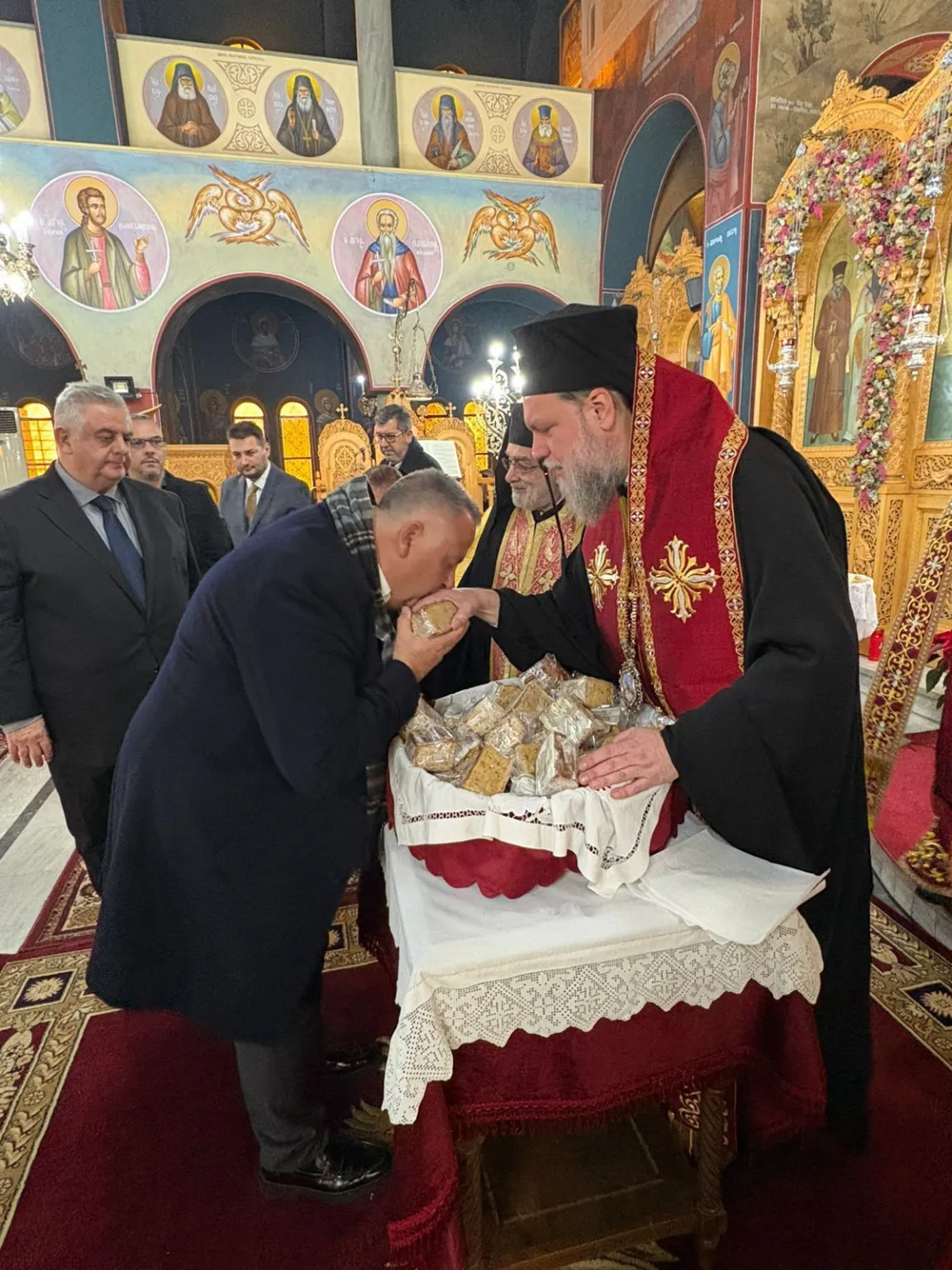 Μετά το πέρας της Δοξολογίας, ο Σεβασμιώτατος ευλόγησε τη Αγιοβασιλόπιτα, ευχόμενος προς όλους χρόνια πολλά και ευλογημένο το νέο έτος με αγάπη, υγεία, ειρήνη και ελπίδα.