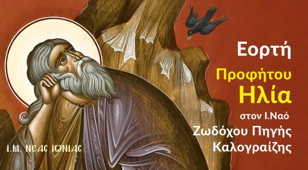 Στον Ιερό Ναό Ζωοδόχου Πηγής Καλογραίζης θα τιμηθεί πανηγυρικώς η εις ουρανούς πυρφόρος ανάβασις του ενδόξου Προφήτου Ηλία του Θεσβίτου κατά το εξής πρόγραμμα: