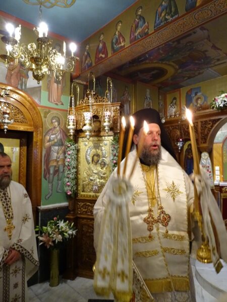 Στην ομιλία του ο Σεβασμιώτατος αναφέρθηκε στο πρόσωπο της Υπεραγίας Θεοτόκου,  αλλά και στην ιστορία της Ιεράς θαυματουργού Εικόνας Της, στην Οποία καθημερινά με ευλάβεια οι πιστοί προστρέχουν στο Ιερό Μητροπολιτικό Παρεκκλήσιο της Αγ. Παρασκευής και εναποθέτουν τις ανησυχίες και τα προβλήματά τους, ζητώντας από την Κυρία Θεοτόκο βοήθεια, δύναμη και παρηγοριά.