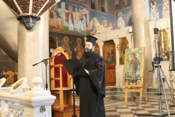 Την εκδήλωση προλόγισε ο Πανοσιολ. Πρωτοσύγκελλος της Ιεράς Μητροπόλεως Αρχιμ. Επιφάνιος Αρβανίτης, ο οποίος προέβη σε ένα σύντομο πνευματικό οδοιπορικό των κοσμοσωτήριων γεγονότων της Αγίας και Μεγάλης Εβδομάδος, αναφερόμενος παράλληλα στις μεγάλες και ηγετικές εκκλησιαστικές προσωπικότητες των αοιδίμων ιδρυτών της πόλεως, οι οποίοι σημάδεψαν την ιστορία της τοπικής Εκκλησίας της Νέας Ιωνίας.