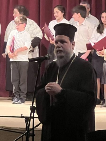 Ο Σεβασμιώτατος αναφέρθηκε στην διαχρονική σχέση μεταξύ Ορθοδοξίας και Ελληνισμού, τους δύο πυλώνες που συνθέτουν και χαρακτηρίζουν την εθνική μας ταυτότητα και συνεχάρη τους συντελεστές που συμμετείχαν στην εορτή, κυρίως δε την φιλόλογο κ. Ευαγγελία Μαρούδη τόσο για την μεθοδική ιστορική έρευνα στην οποία προέβη, όσο και για την αξιόλογη συγγραφή του θεατρικού έργου.