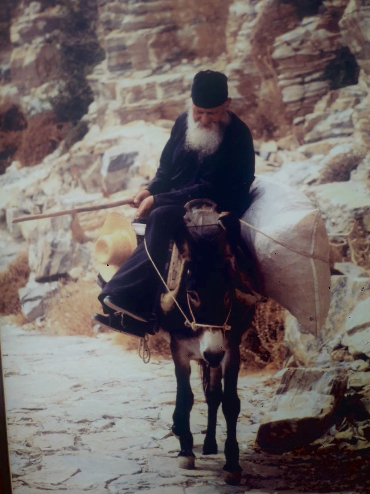 Συχνά μας ομιλούσε για τον αγαπημένο του Άγιο, τον Άγιο Σπυρίδωνα, τον ταπεινό ποιμένα που έγινε θαυματουργός Επίσκοπος. Μεγαλωμένος ο ίδιος κάτω από τη σκέπη του Αγίου στον ομώνυμο Ναό του χωριού του, στο Βρούτση της Αμοργού, βίωνε εκείνο το διπλό χάρισμα: από τη μία Ποιμήν λογικών προβάτων, από την άλλη φίλος και φροντιστής της αλόγου κτίσεως.