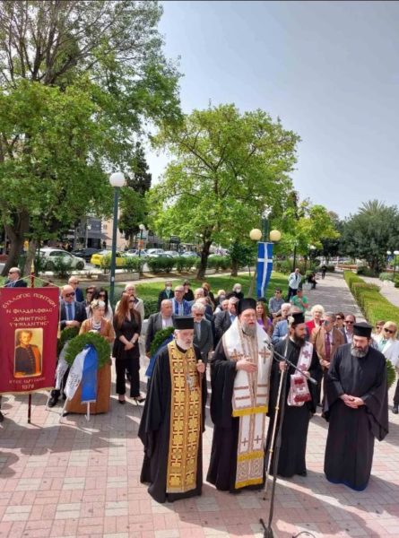 Χαιρετισμό απηύθυναν ο Δήμαρχος Ν. Φιλαδέλφειας-Ν. Χαλκηδόνας κ. Ιωάννης Βούρος και ο Πρόεδρος του Συλλόγου Ποντίων Νέας Φιλαδέλφειας «Δ. Υψηλάντης» κ. Γεώργιος Σαραφίδης. Στη συνέχεια πραγματοποιήθηκε κατάθεση στεφάνων και η ανάκρουση του Εθνικού Ύμνου.