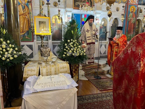 Νωρίτερα, ο Σεβασμιώτατος Μητροπολίτης Νέας Ιωνίας, Φιλαδελφείας, Ηρακλείου και Χαλκηδόνος κ. Γαβριήλ προεξήρχε της Αρχιερατικής Θείας Λειτουργίας στον Ιερό Ναό Αγίου Ιωάννου Μαδύτου Νέας Φιλαδελφείας, όπου τέλεσε το Αρχιερατικό Μνημόσυνο υπέρ αναπαύσεως της ψυχής του μακαριστού Αρχιεπισκόπου κυρού Χρυσοστόμου.